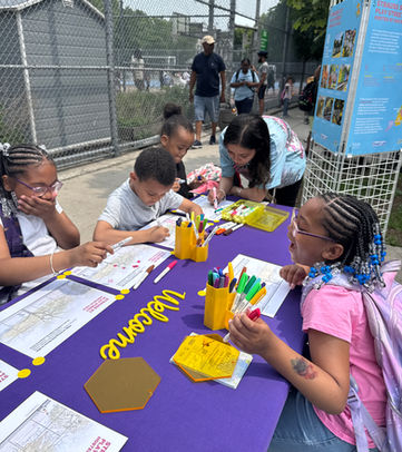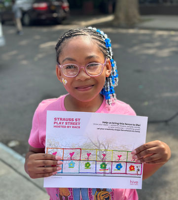 In Spring 2025, In collaboration with the NYC Department of Health and Mental Hygiene (DOHMH) and Riverdale Avenue Community School (RACS), Hive Public Space invited the RACS community and its neighbors to take part in ideation and design sessions to co-create fence art along Strauss Street.